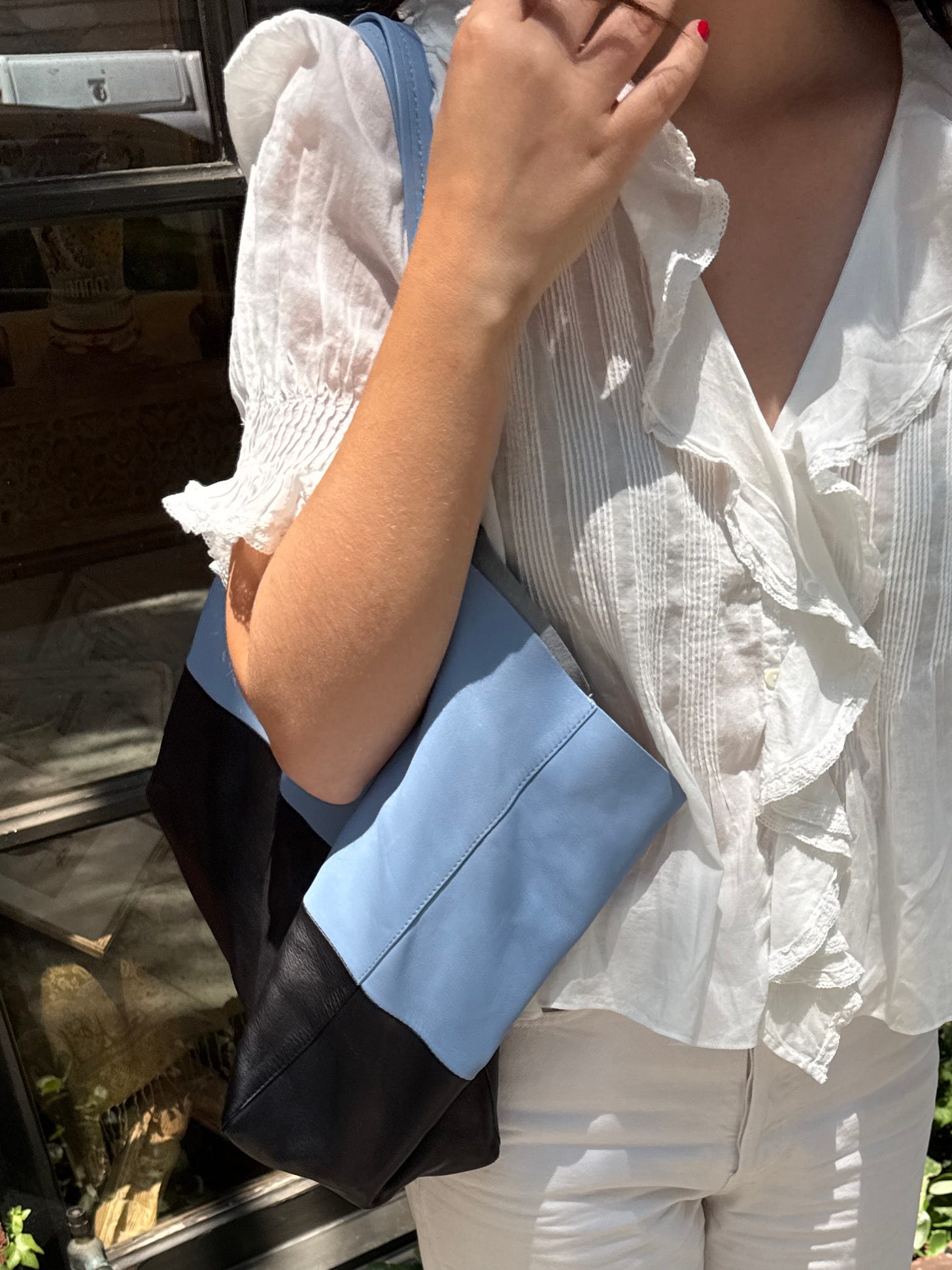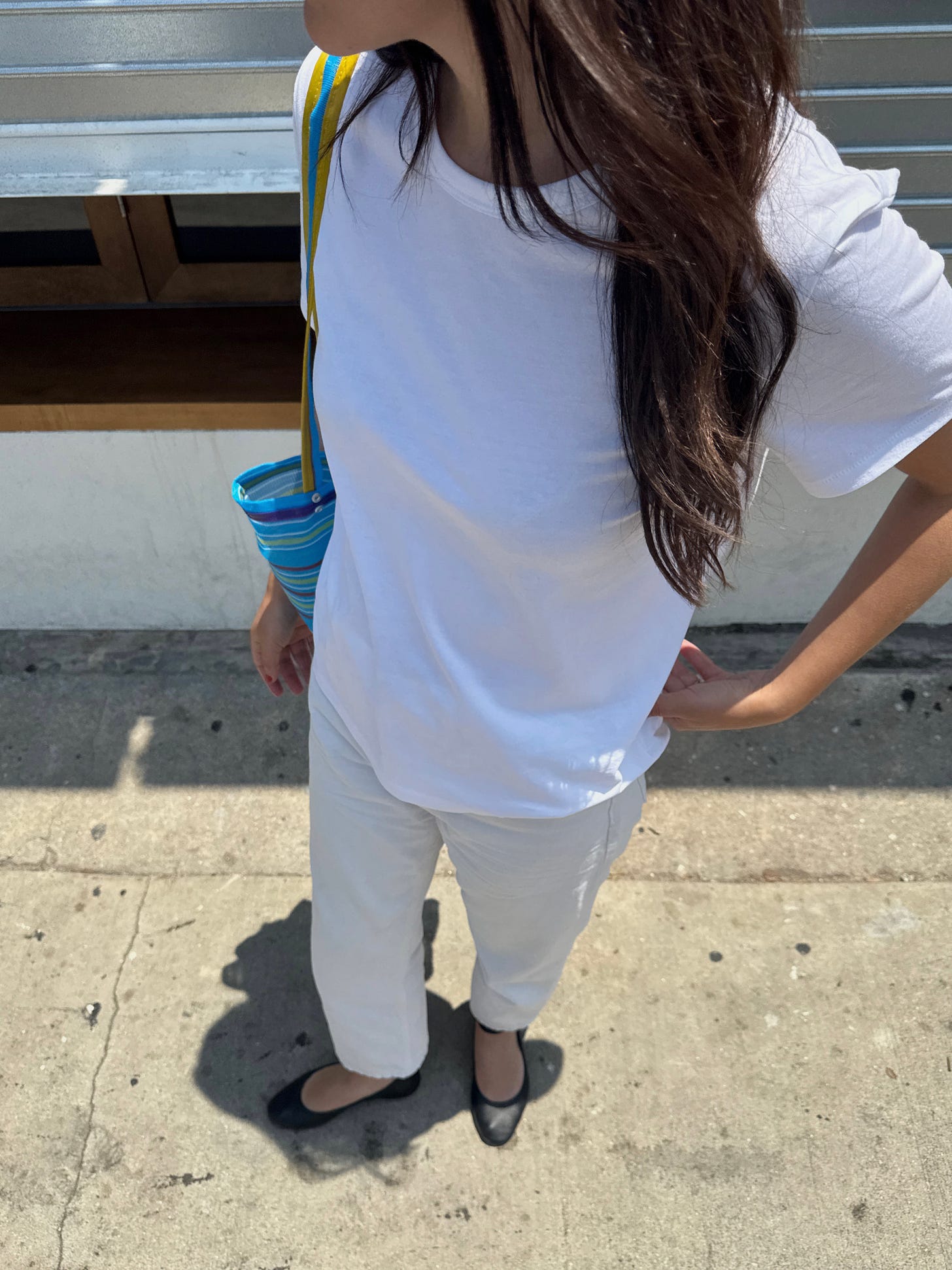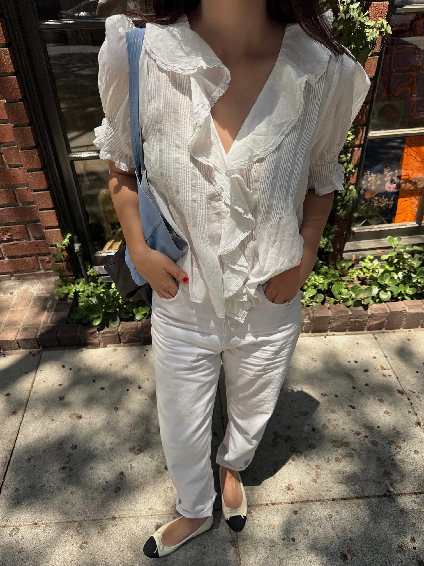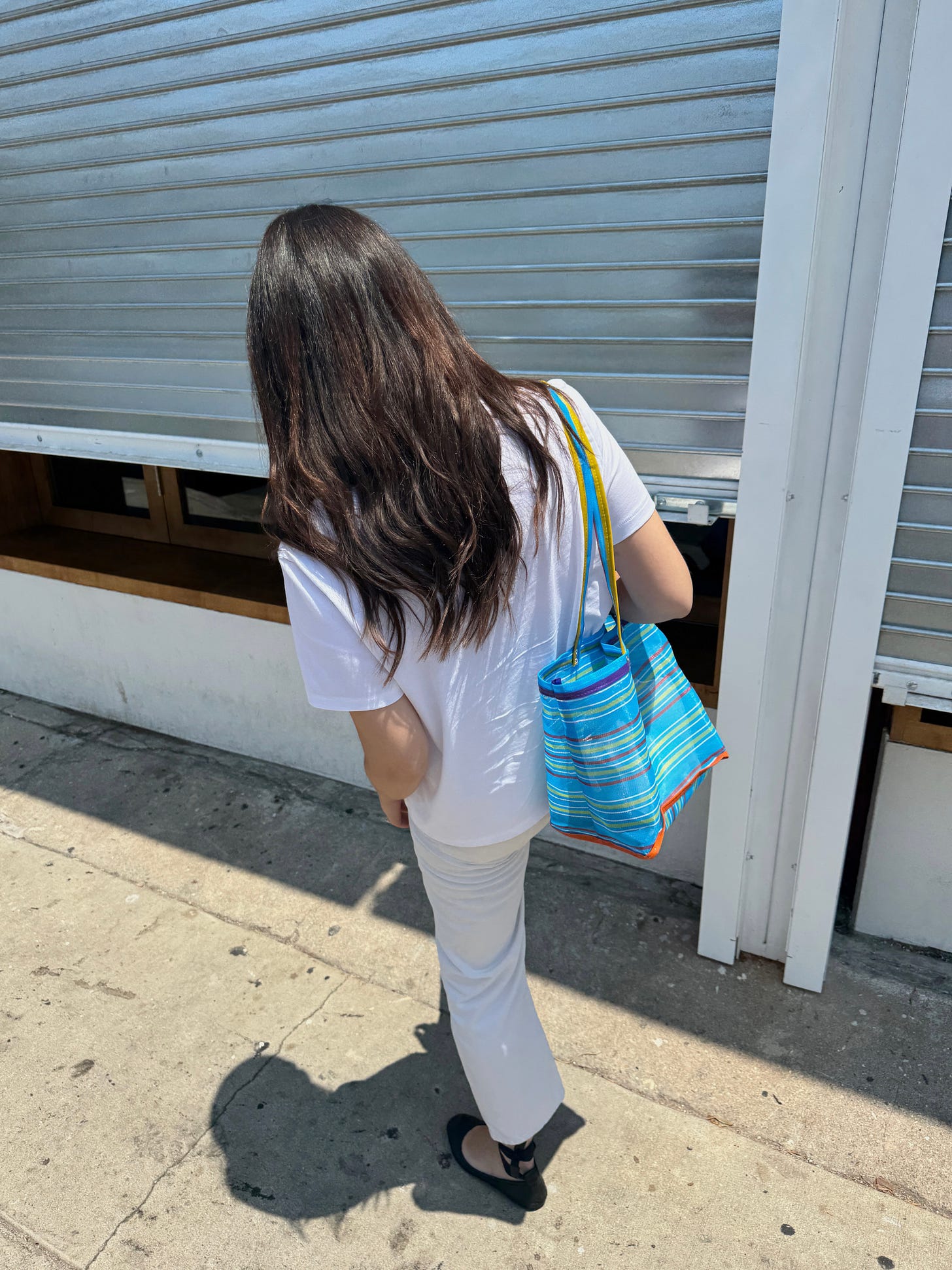 This prompted me to bring out my old Celine blue tote. Taking a cue from the semi-monochrome outfit above, but as an all-white look styled for summer.